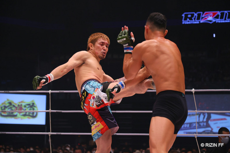 流血しながらも蹴りを放つ昇侍©️RIZIN