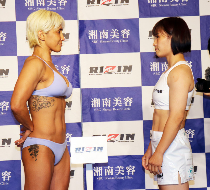 山本美憂(左)と大島沙緒里の前日計量