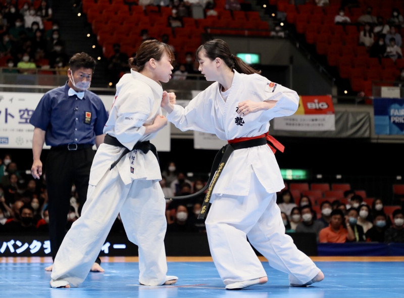 今年のJFKO全日本準決勝で、絶対王者・菊川結衣(左)と打ち合う清水未来(右)