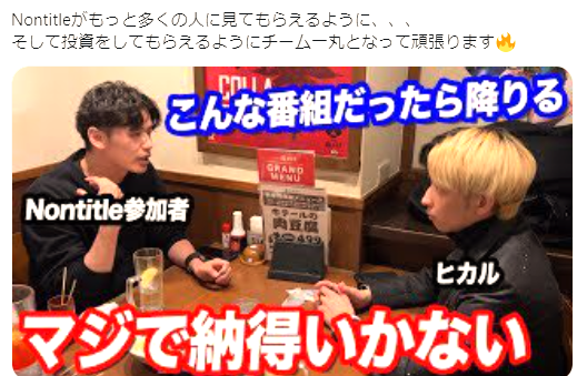 松葉は『Nontitle』でYoutuberヒカルに降板を直訴したこともある(松葉大輝Twitterより)