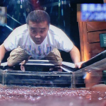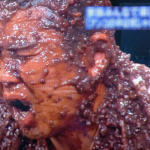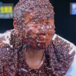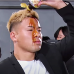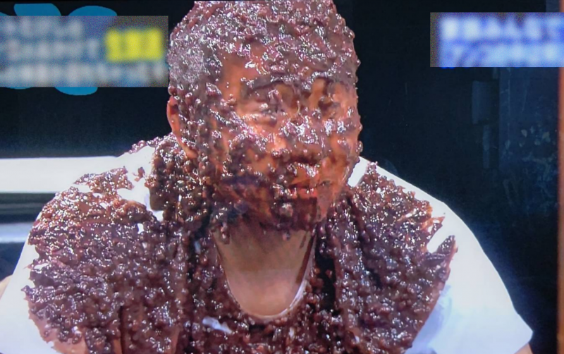 お宮の松、ワサビでトラウマあったが、その後、上写真の小豆(あんこ)風呂にチャレンジ、鼻や口に甘さが数日残ったという(本人提供)