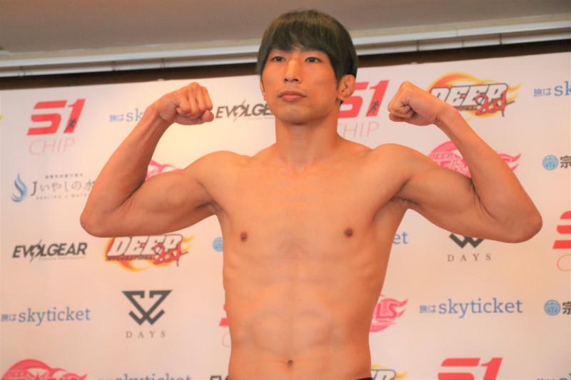 計量パスした渡部はマッスルポーズ