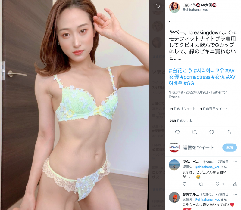 白花はSNSで試合までGカップにすると、青山の対戦を意識する(白花こうTwitterより)