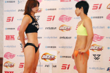 【フォト】組みつかれるケイト、前日計量で美ボディのマッスルポーズ披露