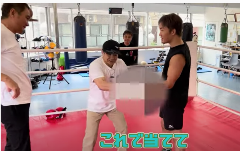 渡嘉敷が朝倉に必殺技を伝授※手の部分にモザイク(朝倉未来YouTubeより)
