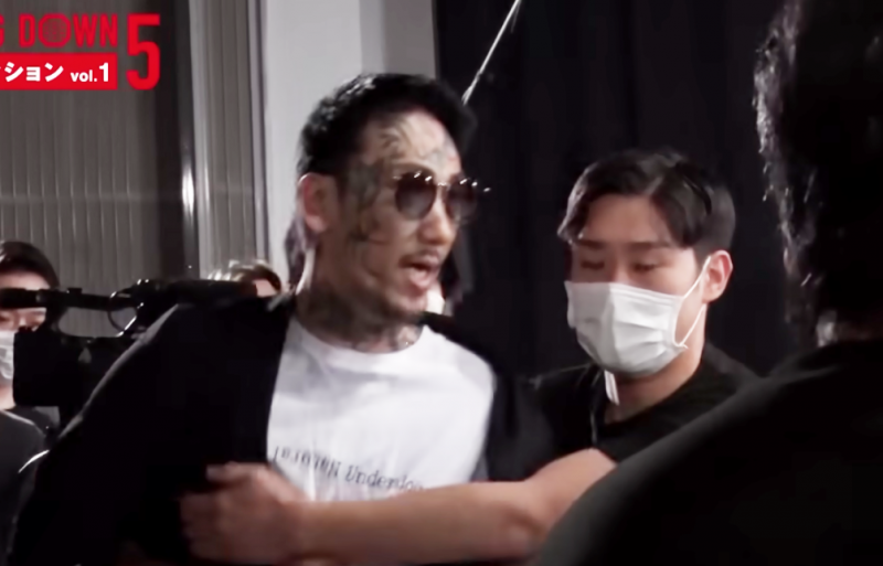 瓜田が椅子を持って襲いかかる、乱闘寸前に!(朝倉未来YouTubeより)