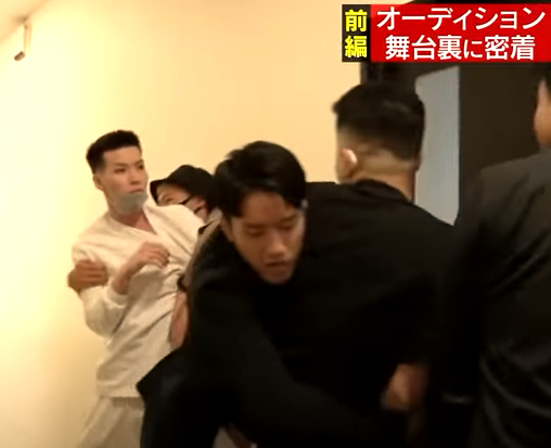 3、取っ組み合いになりそうになると、海が脇をさしてボディロック(朝倉海チャンネルより)
