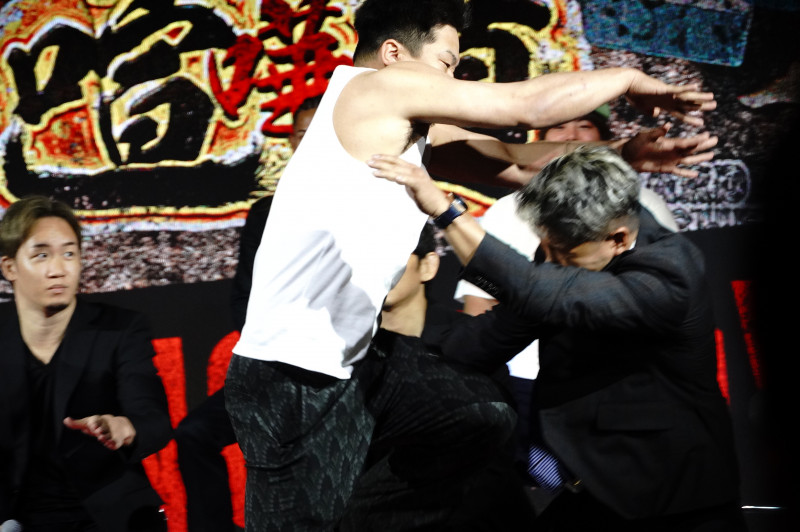 てるが細川に飛びかかる!朝倉未来(左)も真剣な表情で見守る