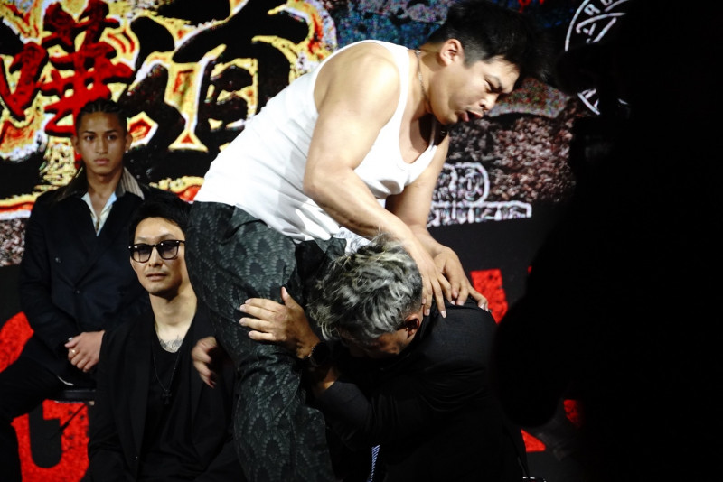細川に飛びかかるてる(左)、怖いもの知らずの男だ