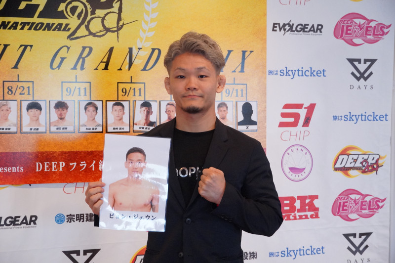 渋谷(右)とジェウン(パネル)が対戦する