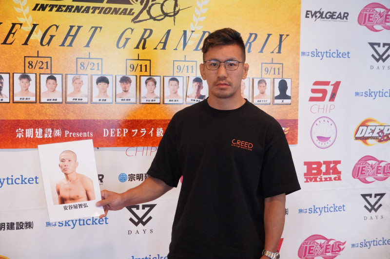 安谷屋(パネル)と対戦する小川(右)