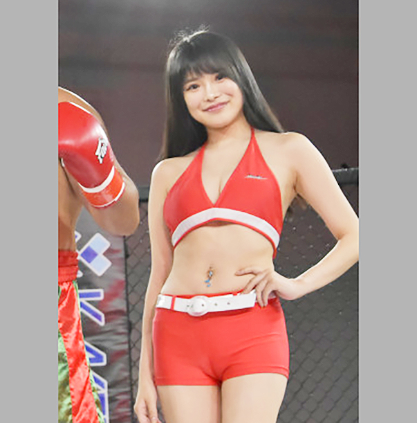 ラウンドガール姿の青山(20年9月HEAT)