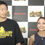 試合後インタビューで田辺(右)は大人気。啓之輔からナンパされる場面も(ブレイキングダウン公式YouTubeより)