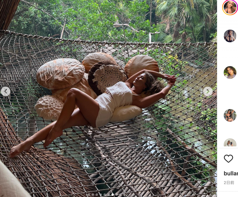 巨大ハンモックで寝そべるパーマー@brittneypalmerより