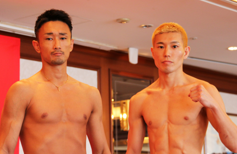 対戦する梅野源治(左)と大谷翔司(右)