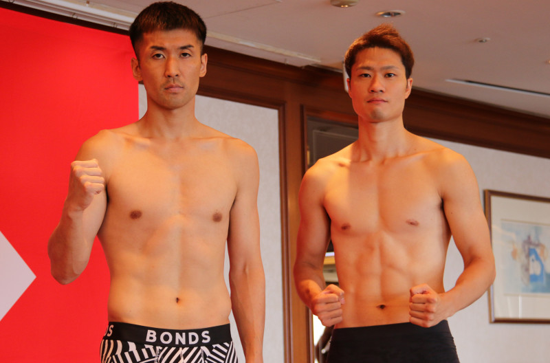 対戦する津崎善郎(左)とVic.YOSHI(右)