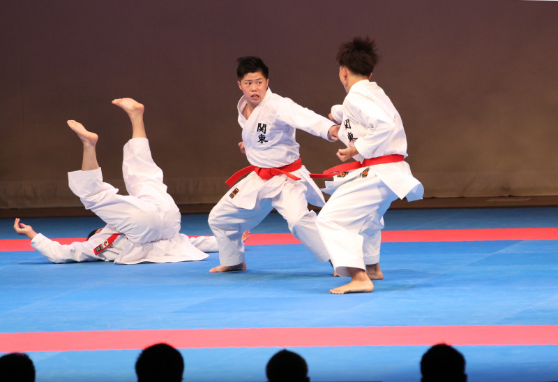 男子優勝の関東A、劇場ステージに敷かれたマット上で、分解形で沸かせた