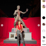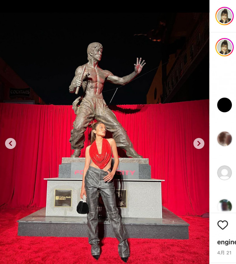 ブルース・リーの像の前でポーズを決めるローラ(ローラ インスタグラムより)