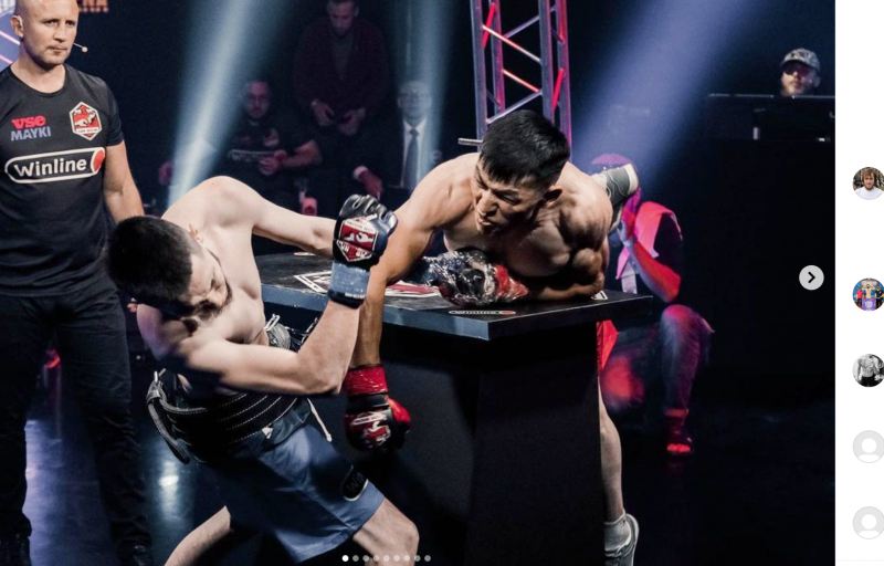 テーブルの乗り出しパンチ!(@armboxing.arenaより)