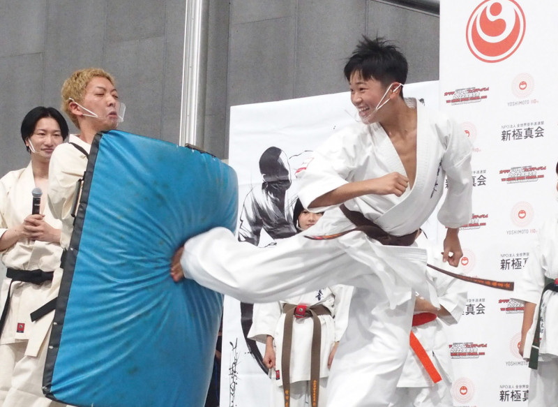 ニューヨークの嶋佐が村田選手のビッグミットを持った