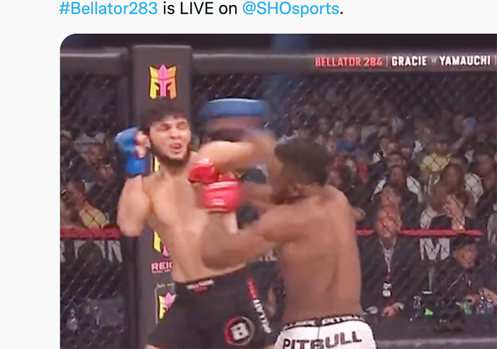 秒殺KOの決定打は実はこの左。空振りか、かすったかに見えたがこれで相手が大きくぐらついた(ベラトールTwitterより)