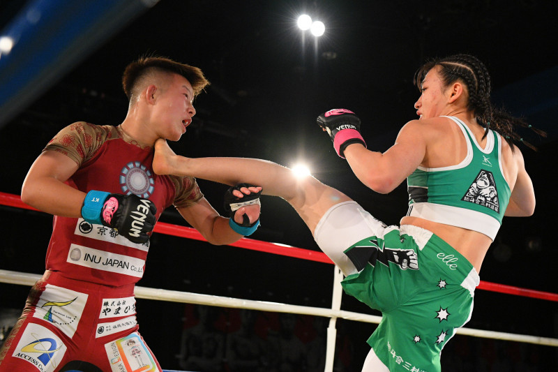 キックを蹴り込む竹林(古賀愛蘭戦)(C)DEEP