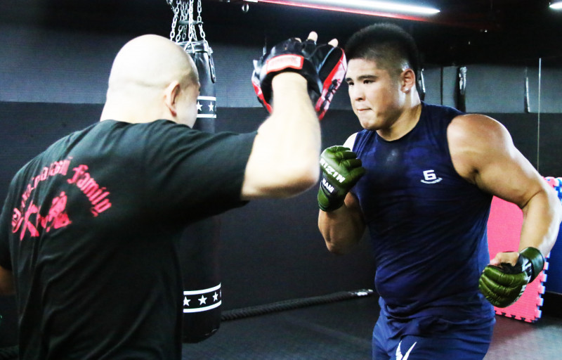 スダリオの迫力あるミット打ち!鍛え上げた三角筋の隆起が凄い