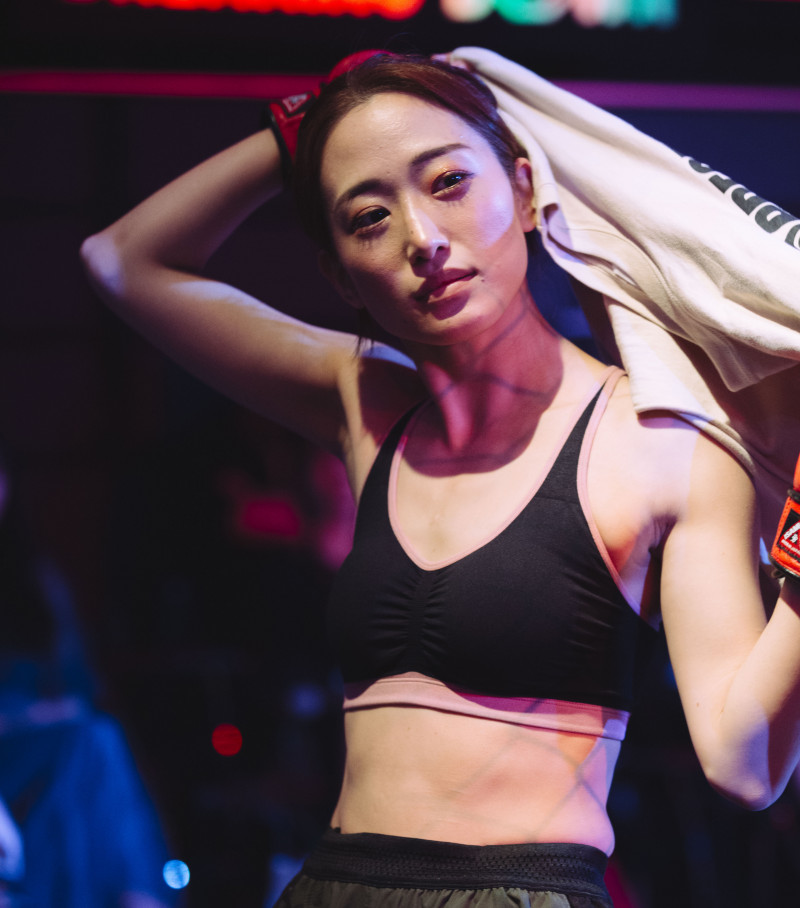 試合場に上がり、上着を脱ぎ試合コスチュームを見せた白花こう