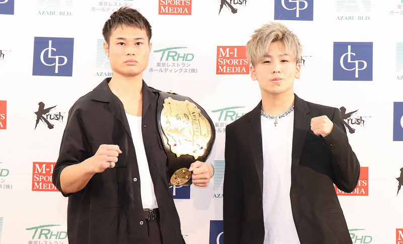 Krushバンタム級王者・池田幸司(左)と野田蒼(右)(C)K-1