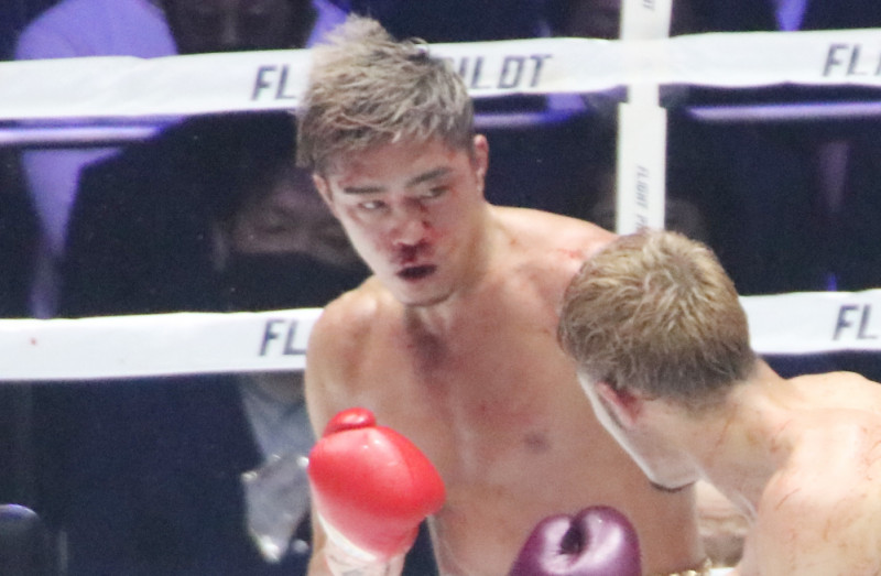 最後の試合となった吉野戦、まぶたから流血しながら攻める伊藤(22年4月)