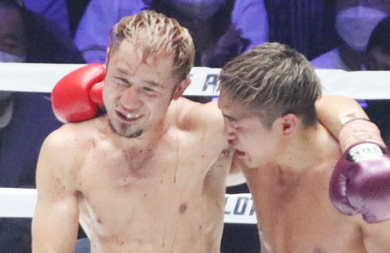 勝利した吉野と肩を組む(22年4月)