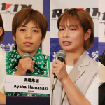 スーパーアトム級GPに出場する(左から)伊澤、浜崎、浅倉、RENA