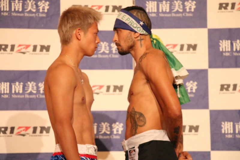 バチバチの睨み合いを展開する三浦(左)とマソーニ