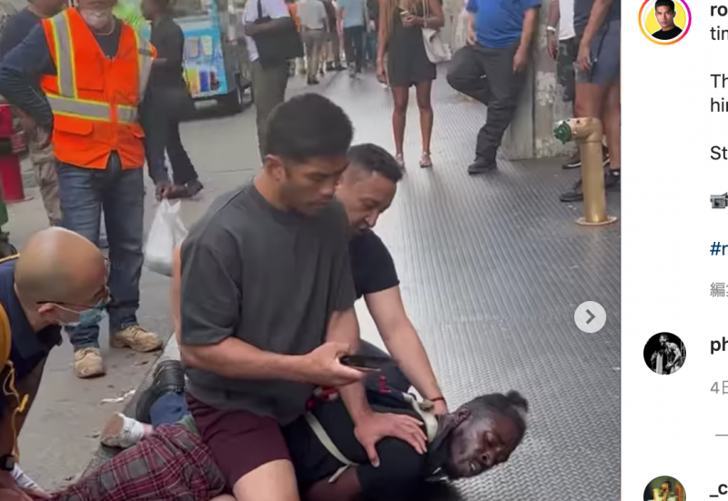 柔術黒帯の格闘家が犯人を取り押さえる(@rotheshowより)