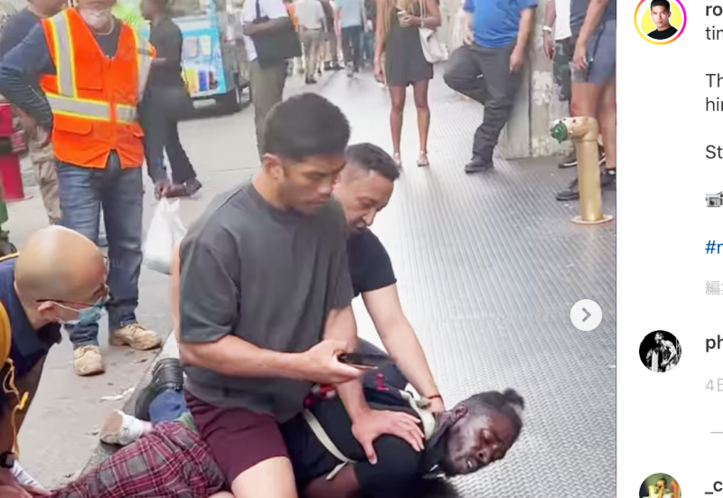柔術黒帯の格闘家が犯人を取り押さえ、携帯で警察を呼ぶ(@rotheshowより)