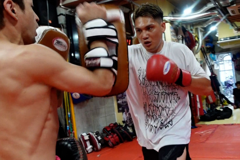 ミットを打つAKIRA(C)K-1