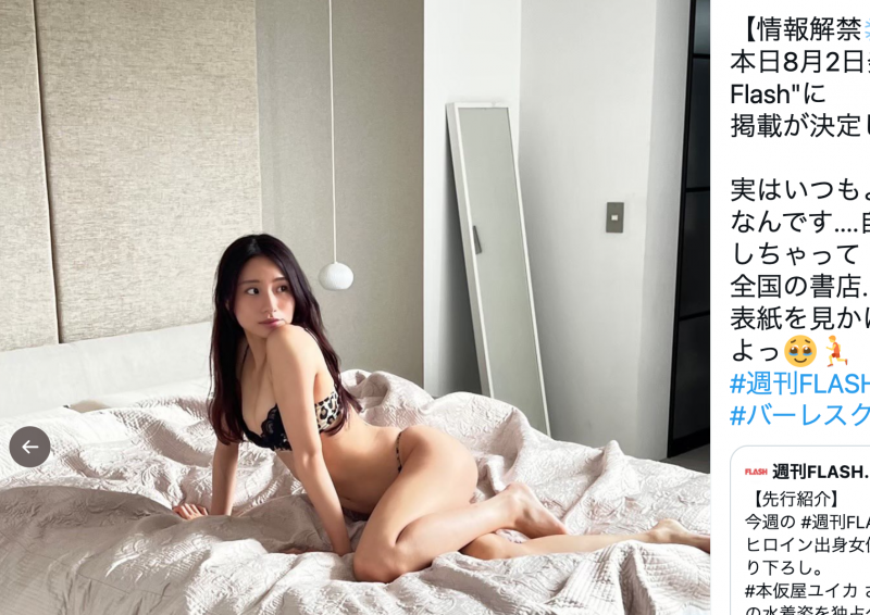 「いつもよりちょっと大胆」とグラビア挑戦を自身のTwitterでアピール(@mirei_burlesqueより)