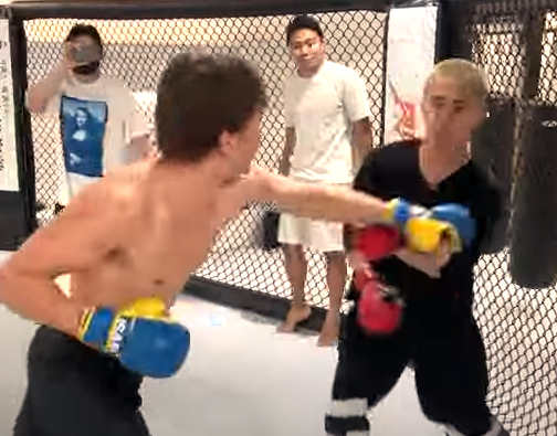 朝倉の左がこめおの顔面へ(『朝倉未来 Mikuru Asakura』YouTubeチャンネル)