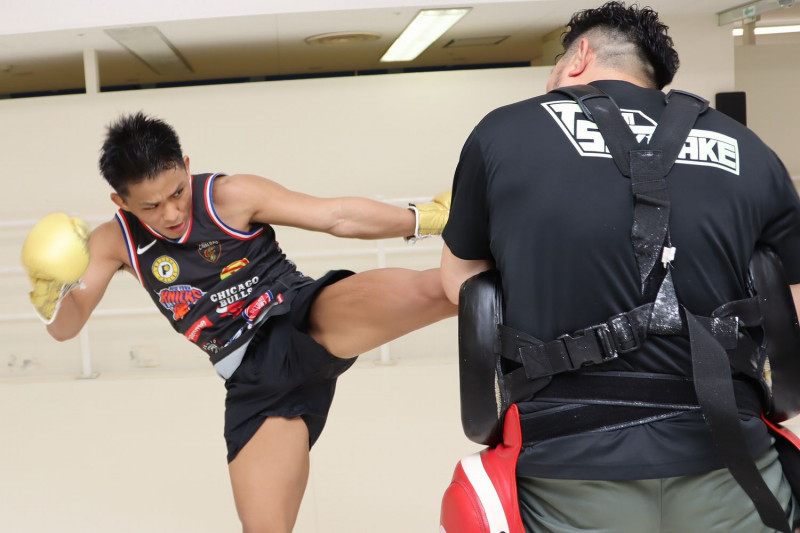 与座の蹴りがミットを貫く (C)K-1