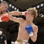 Krushの舞台で新美(左)にラッシュを仕掛ける玖村(右)