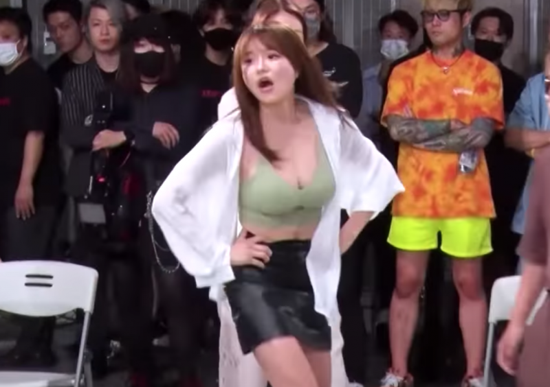 椅子を蹴るラウンドガール青山あいり(朝倉未来YouTubeより)