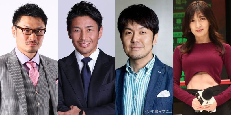 今回ゲスト解説を務める(右から)熊田曜子、土田晃之、魔裟斗、佐藤嘉洋