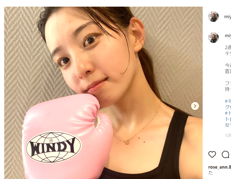 宮原華音が愛用グローブとともにトレーニングショットを公開(宮原華音Instagramより)