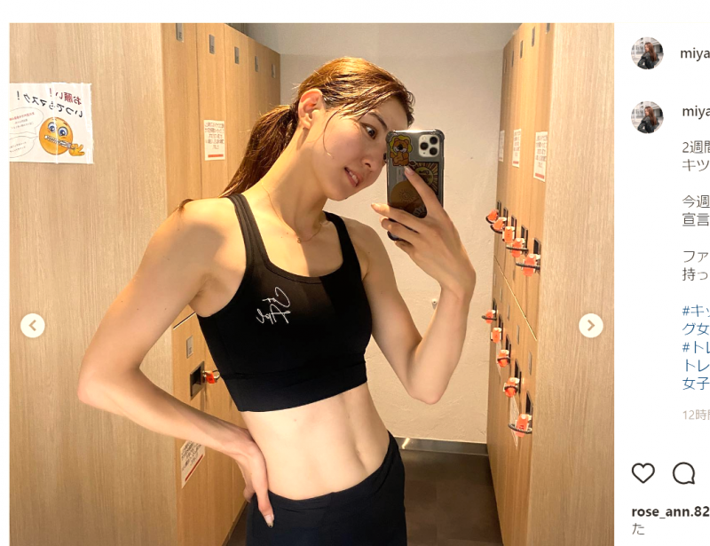 宮原は腹筋をチラ見せ(宮原華音Instagramより)