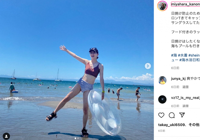 水着で海水浴を楽しむ宮原(宮原華音インスタグラムより)