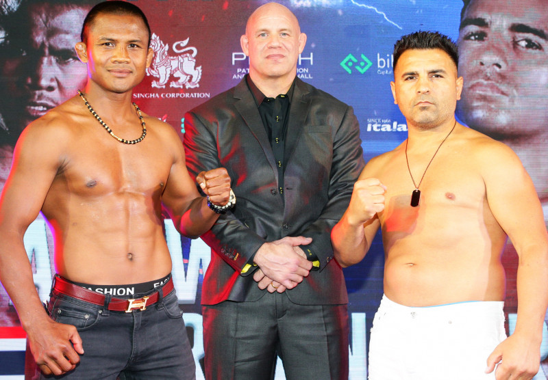 激突するブアカーオ(左)とバロル(右)©️BKFC THAILAND