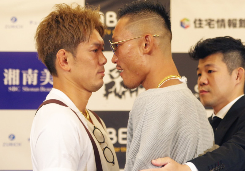 皇治(左)とヒロキング(右)が90秒間のバチバチの睨み合い