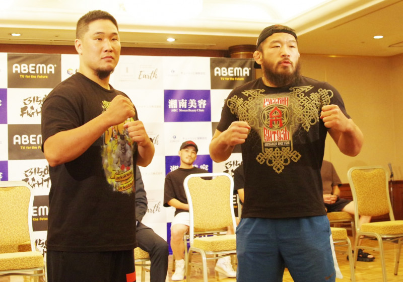 高山(左)と並ぶ石井(右)石井の肩幅のフレームが大きい
