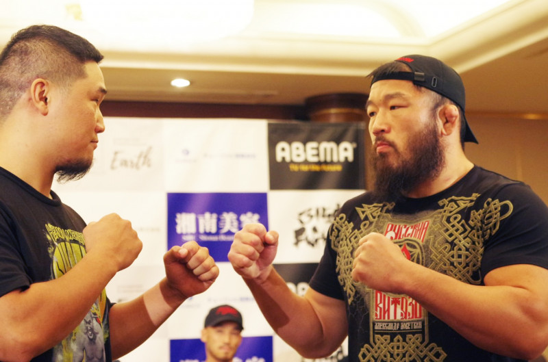 対戦する高山(左)と睨み合う石井(右)