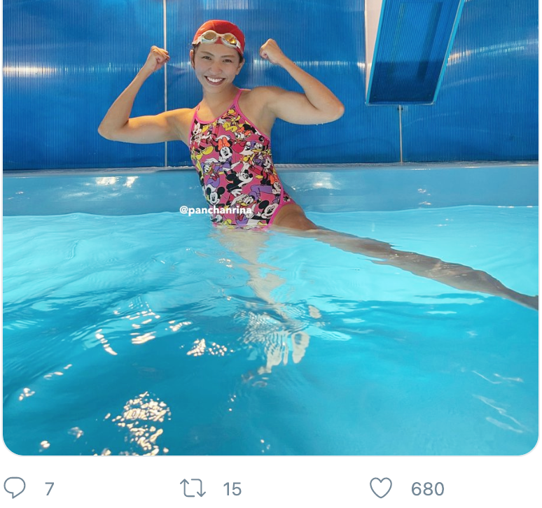 ぱんちゃんが水着姿でマッスルポーズ(ぱんちゃん璃奈Twitterより)